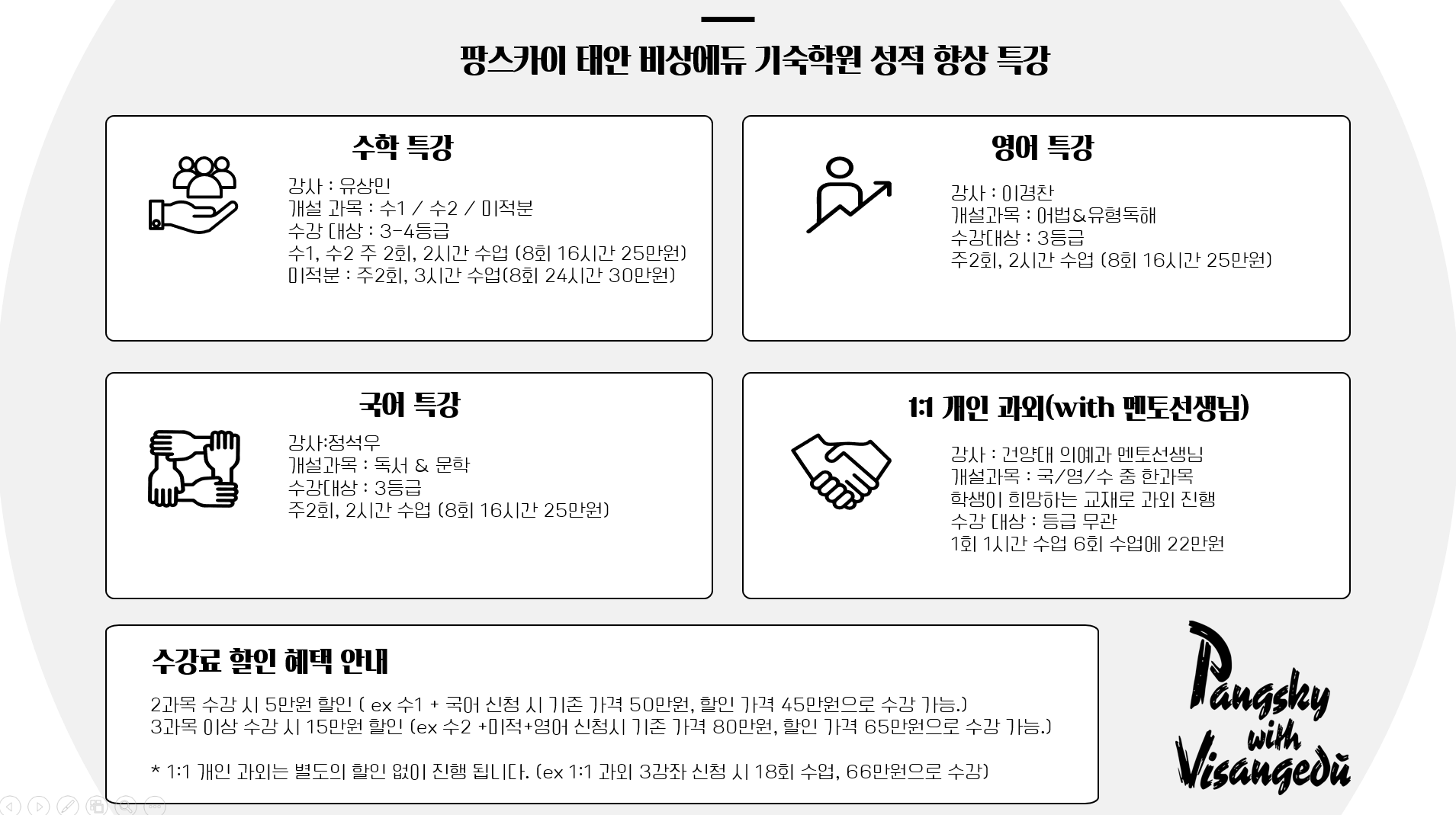오직 학생 개개인에 맞춘 커리큘럼을 통해